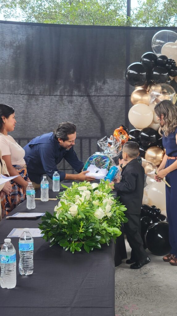 Recientemente, tuvimos el honor de participar en la graduación del CAM de Pesquería, Nuevo León, una escuela que brinda atención a niñas y niños con necesidades especiales y de bajos recursos. Como padrinos de graduación, nuestro objetivo fue acompañar a los alumnos en un día tan importante y celebrar sus logros junto a la comunidad educativa y sus familias.